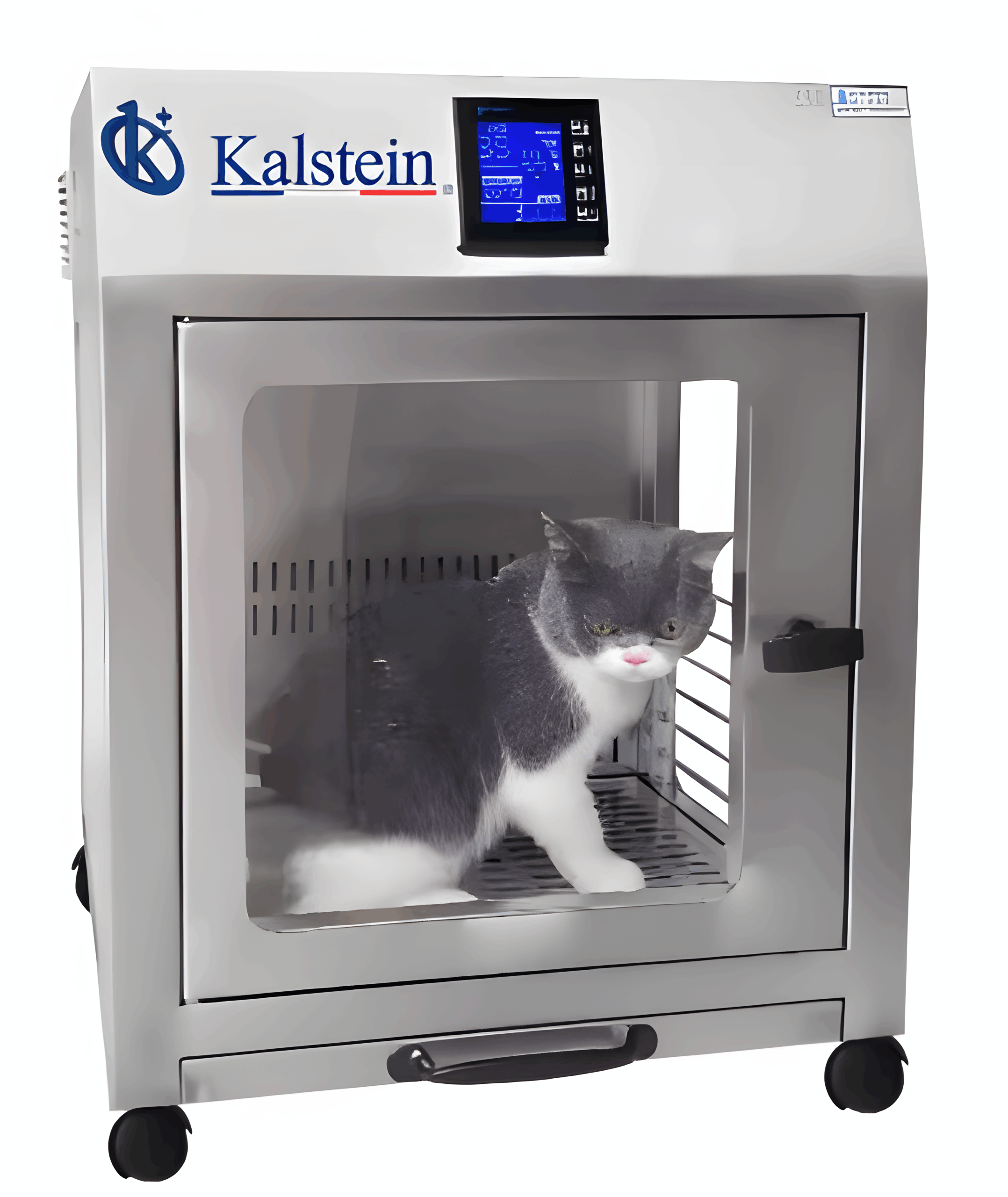 Both models feature an intelligent control panel that allows adjustment of temperature, air speed, and working time, ensuring a personalized and comfortable drying experience. Its ozone and ultraviolet disinfection system keeps the machine and accessories clean, protecting the animal’s health. With an adaptable power range of 110–220 V, the dryer can operate continuously for 24 hours, providing a balanced airflow with 70% hot air and 30% fresh air, optimizing energy consumption. Its breathable design prevents the feeling of confinement, while the three-sided plexiglass windows allow observation of the pet throughout the process. In addition, the removable bottom dirt collector makes cleaning easier, making this equipment an essential professional tool for both veterinary clinics and pet grooming centers.