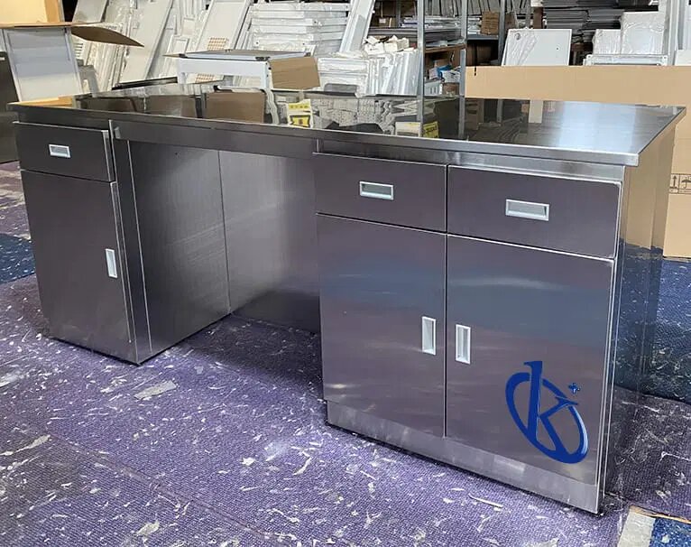 El banco de trabajo YR06013 está fabricado en acero inoxidable 304, conocido por su alta resistencia a la corrosión y durabilidad, lo que lo hace ideal para entornos de laboratorio donde se manejan sustancias químicas y se requiere una limpieza constante.