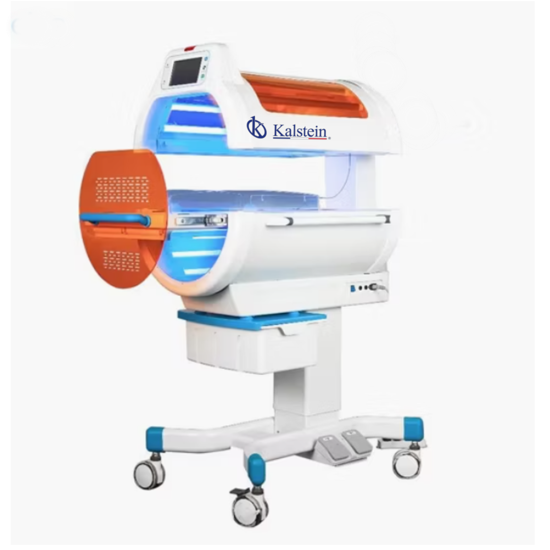 Este equipo destaca por su diseño de irradiación de 360° sin ángulos muertos, lo que permite una cobertura uniforme y extensa sobre el cuerpo del bebé para maximizar la eficacia del tratamiento. Incorpora una fuente de luz LED (Diodo Emisor de Luz) con una intensidad ajustable en tres niveles (33%, 66% y 100%) y una longitud de onda efectiva de 400nm a 550nm.