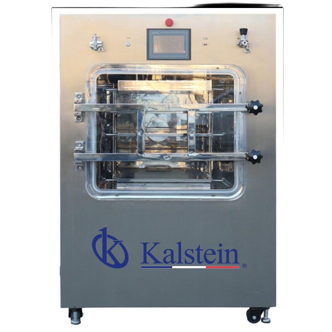 Ce modèle inclut un système de presse supérieure (stoppering), spécifiquement conçu pour le séchage des flacons (vials). Une fois le processus terminé, il permet de sceller les bouchons hermétiquement à l’intérieur de la chambre sous vide, évitant ainsi toute contamination secondaire et la réabsorption d’humidité. C’est la solution parfaite pour les laboratoires et les usines pilotes nécessitant une automatisation du séchage et de la sublimation avec des résultats répétables.